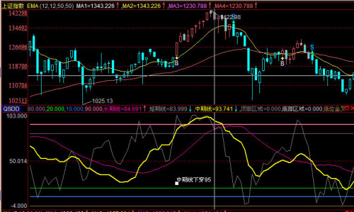 ◆《趨勢(shì)頂?shù)字笜?biāo)用法》之調(diào)出此趨勢(shì)頂?shù)字笜?biāo)方法:在指標(biāo)上面點(diǎn)一下,輸入QSDD,回車。