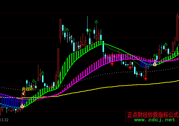 主線:=(MA(CLOSE,6)+MA(CLOSE,12)+MA(CLOSE,24)+MA(CLOSE,36))/4,COLORFF00FF,LINETHICK2;